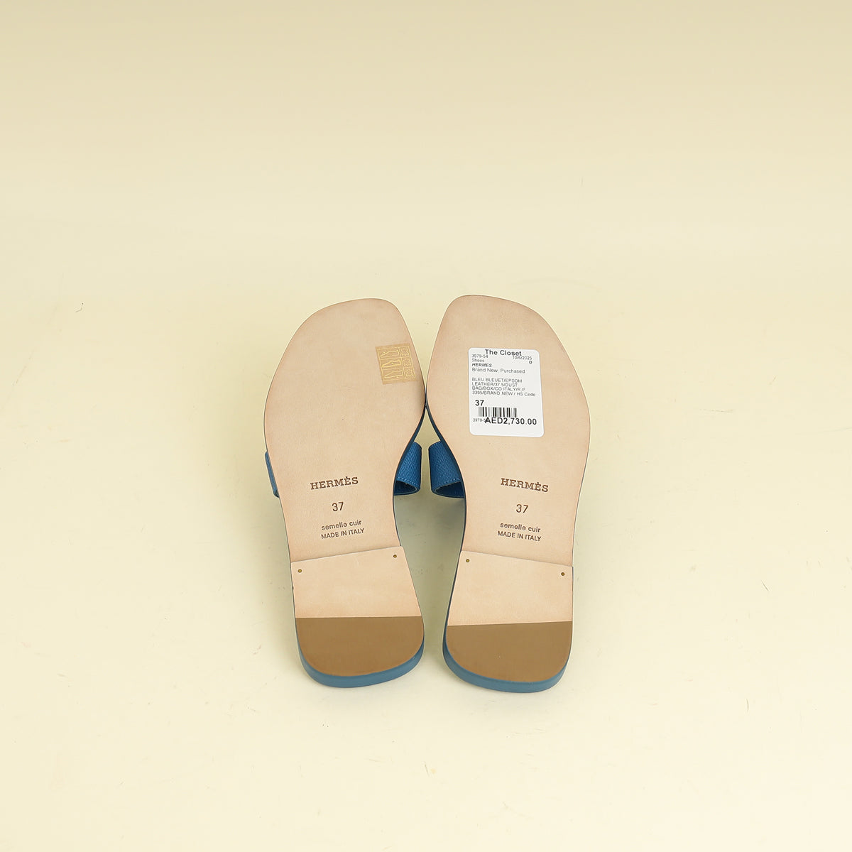 Hermes Bleu Bleuet Oran Sandal 37